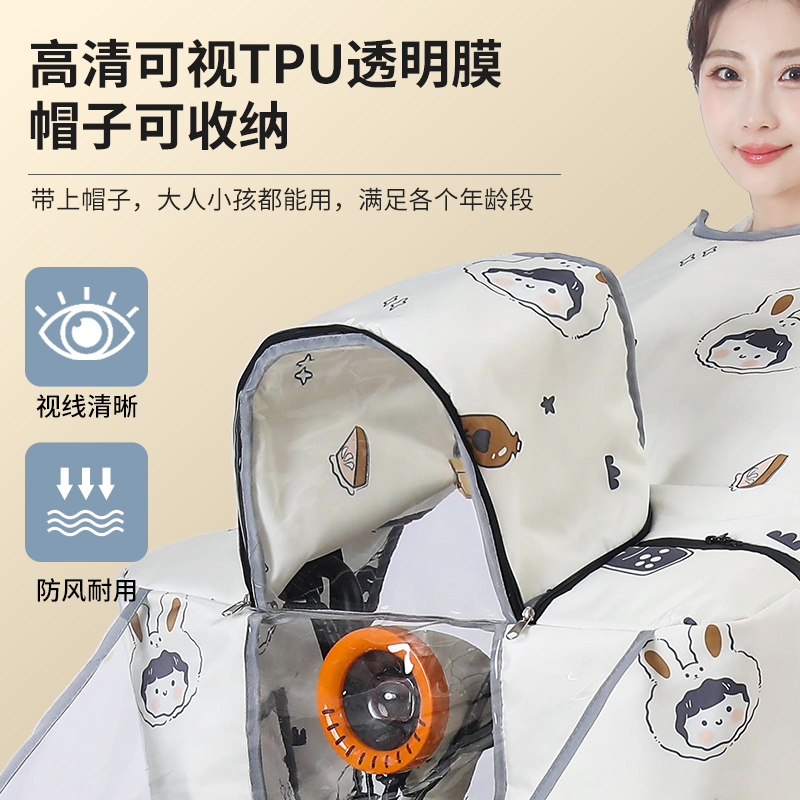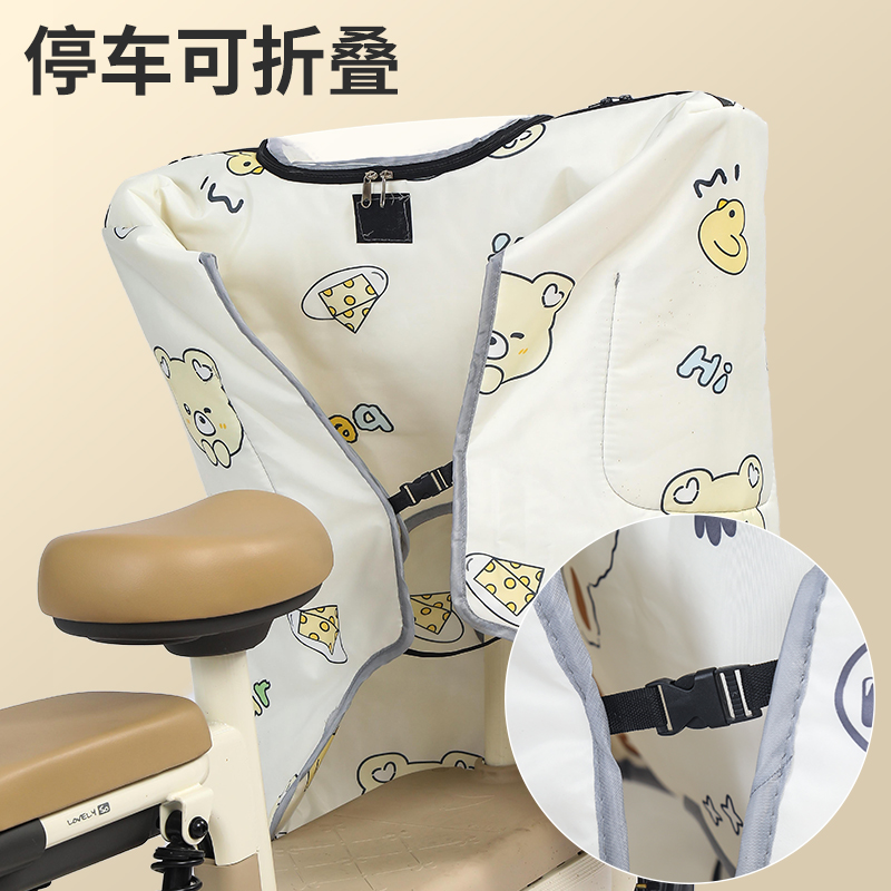亲子电动车挡风被四季通用防水防风防晒罩小电瓶自行车带小孩冬季