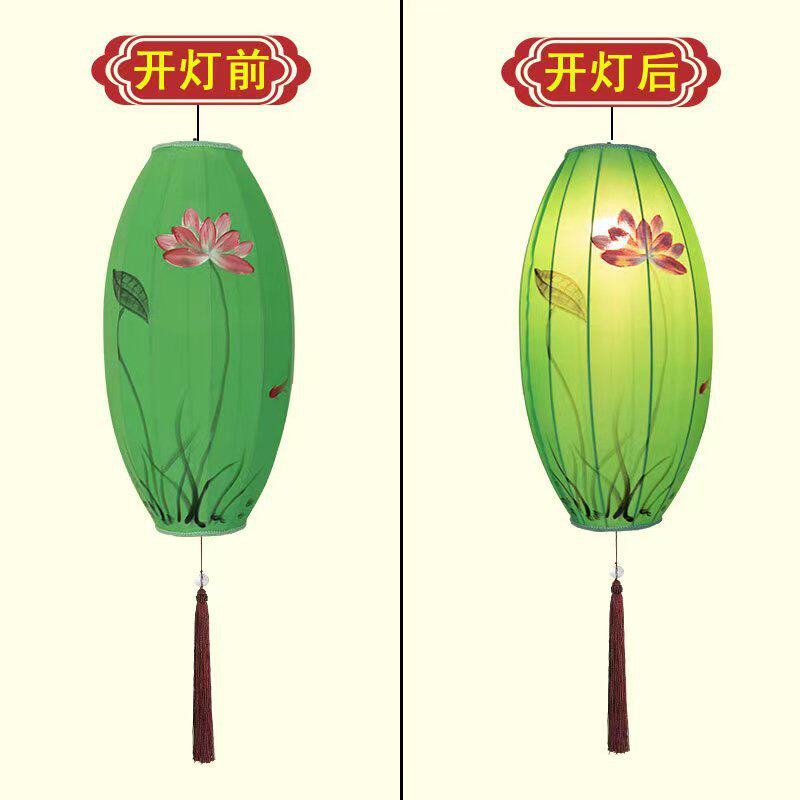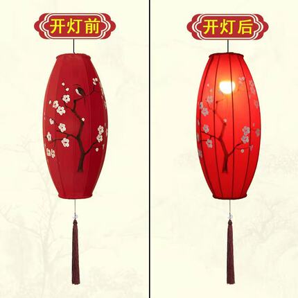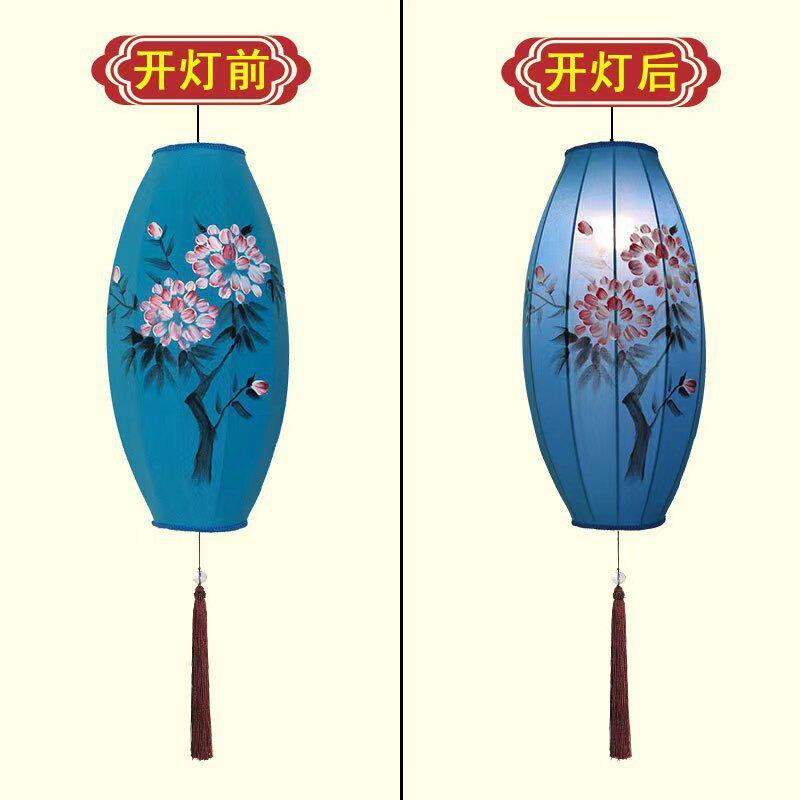 两头尖橄榄手工绘画手绘唐风国潮防水户外装饰仿古中国红灯笼灯