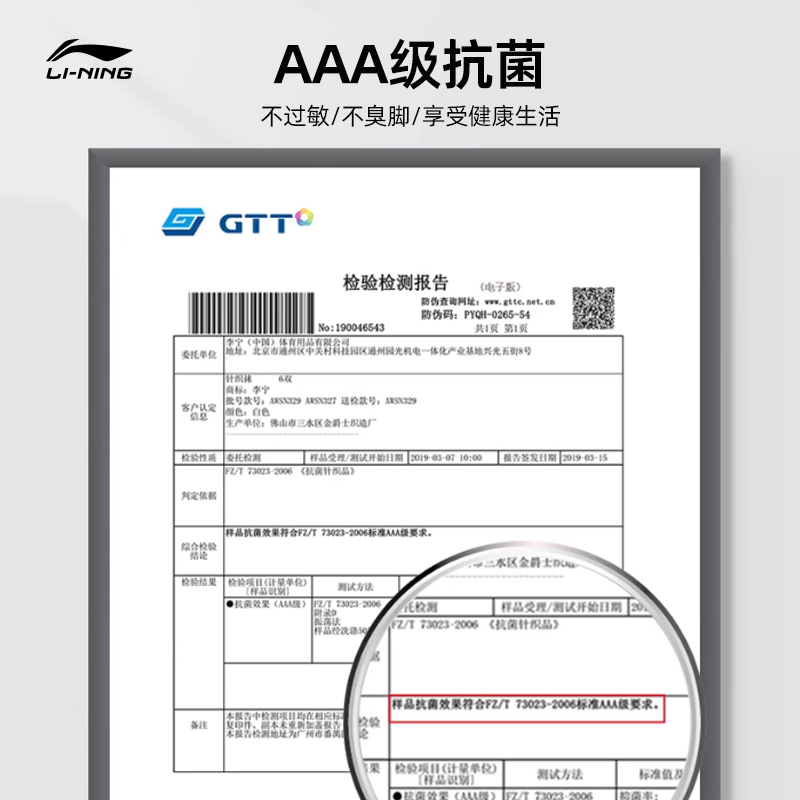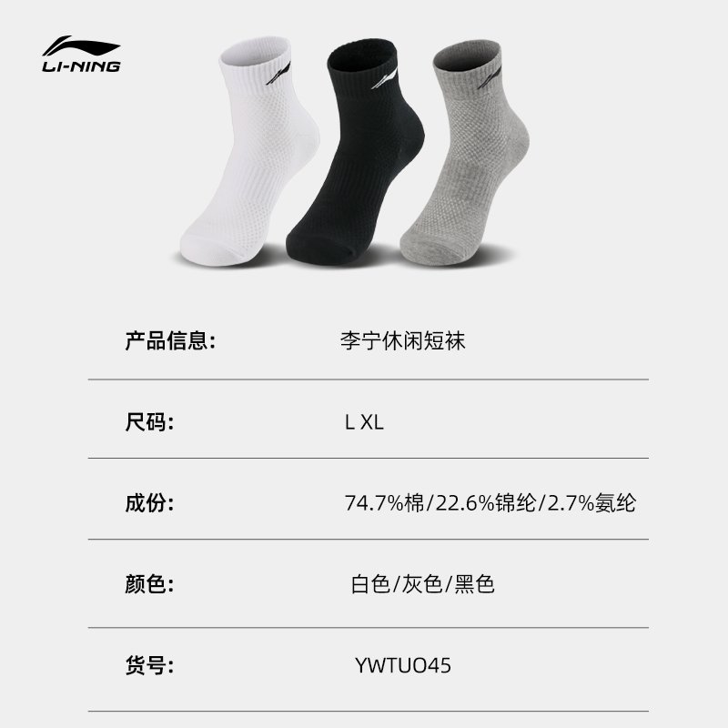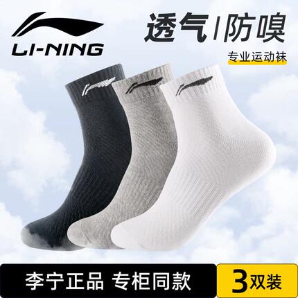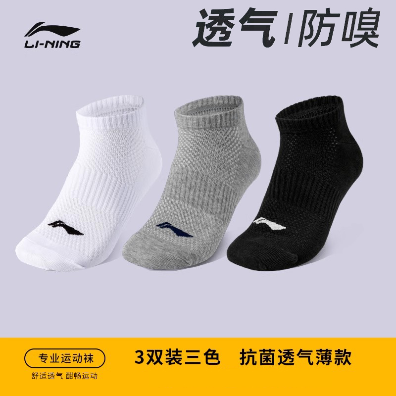李宁运动袜子男士吸汗透气袜跑步篮球袜防嗅抗菌女短袜白色棉夏季