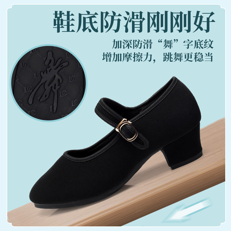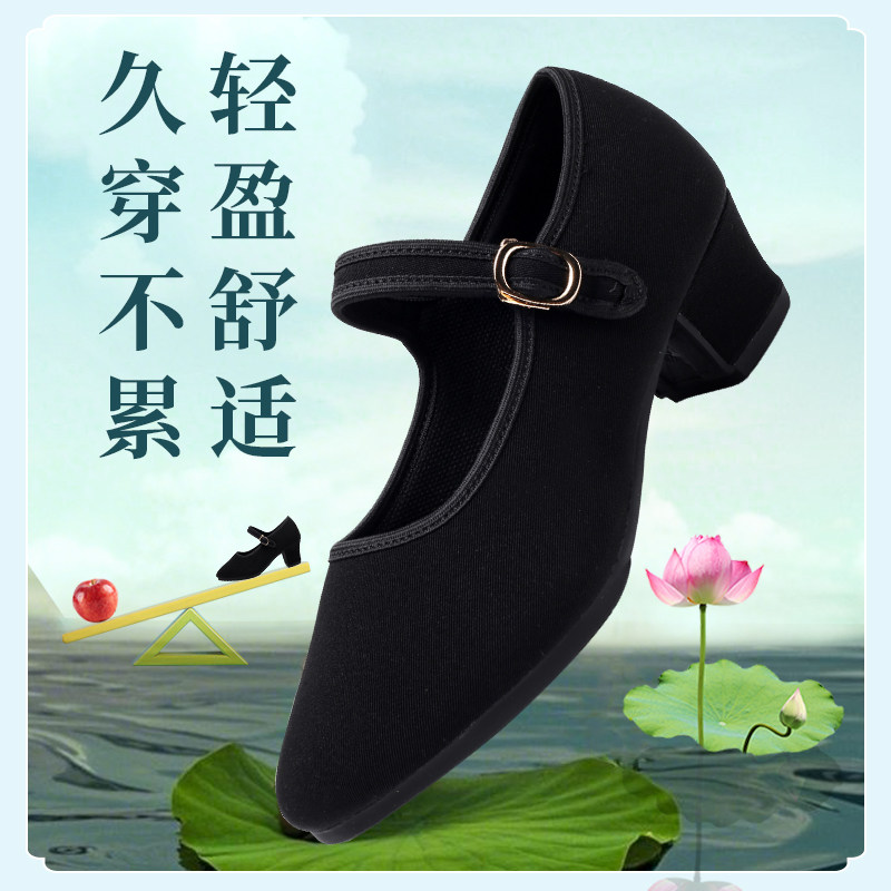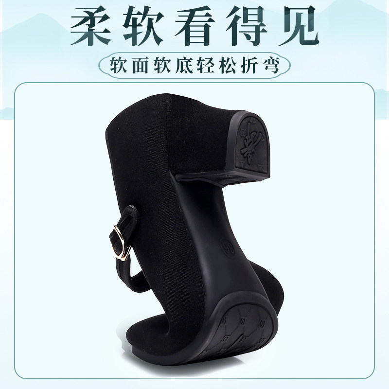 新款成人黑色女士广场舞鞋高跟老北京布鞋软底跳舞妈妈走秀舞蹈鞋