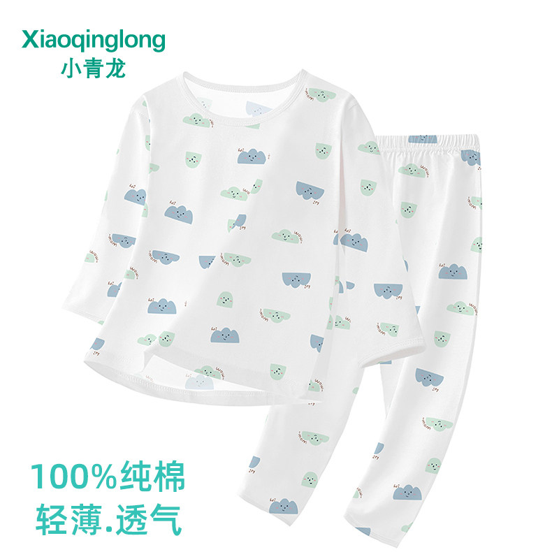 小青龙内衣儿童春夏纯棉空调服薄款透气打底睡衣全棉家居服套装