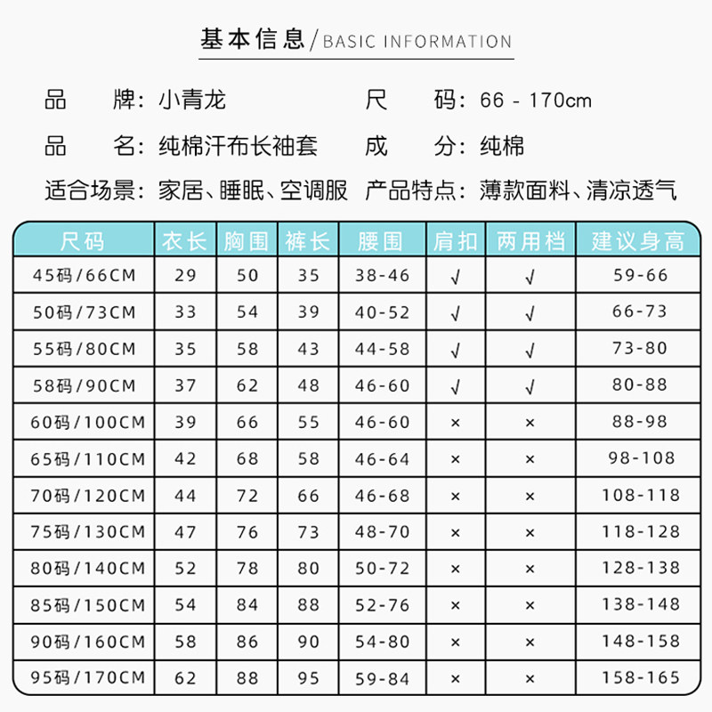 小青龙春夏空调服长袖儿童内衣