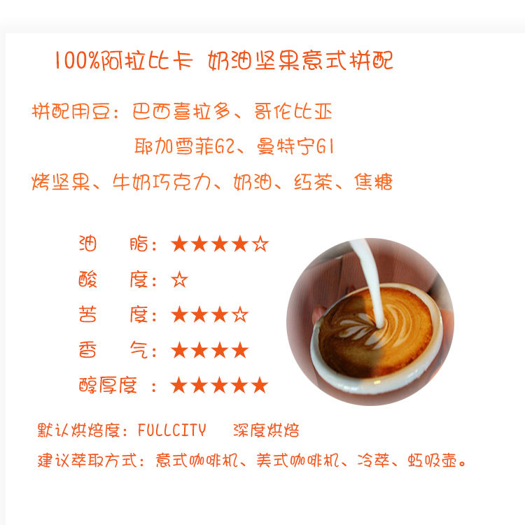 意式咖啡豆Espresso拼配奶油坚果香1KG 100%阿拉比卡新鲜烘焙包邮