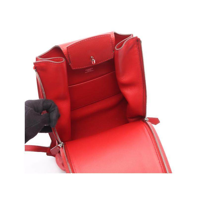 中古Hermes爱马仕女包A级95新backpack背包牛皮双肩包红色