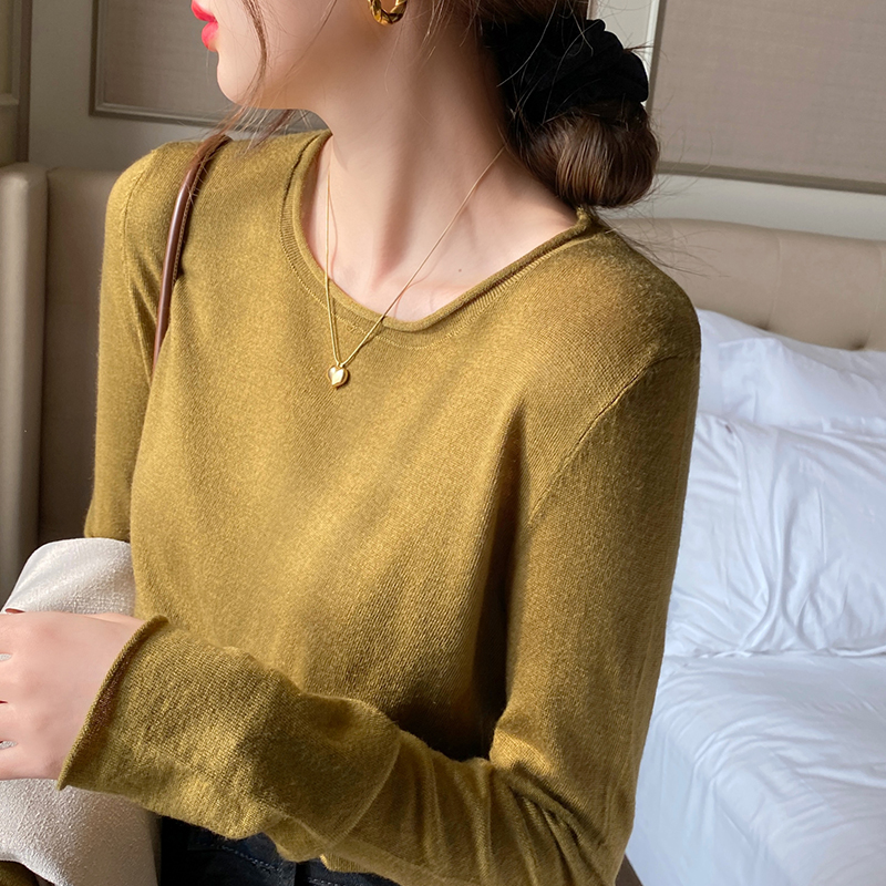白色长袖圆领打底衫女内搭2025春秋新款薄款毛衣修身百搭针织上衣