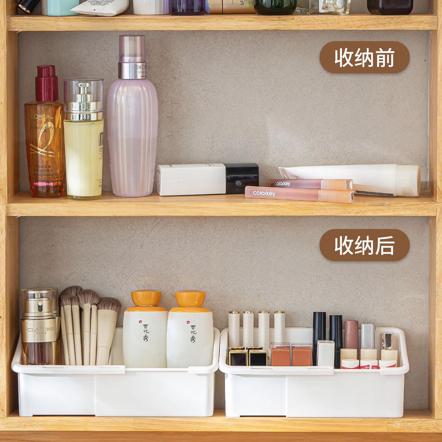 浴室镜柜伸缩分格化妆品收纳盒