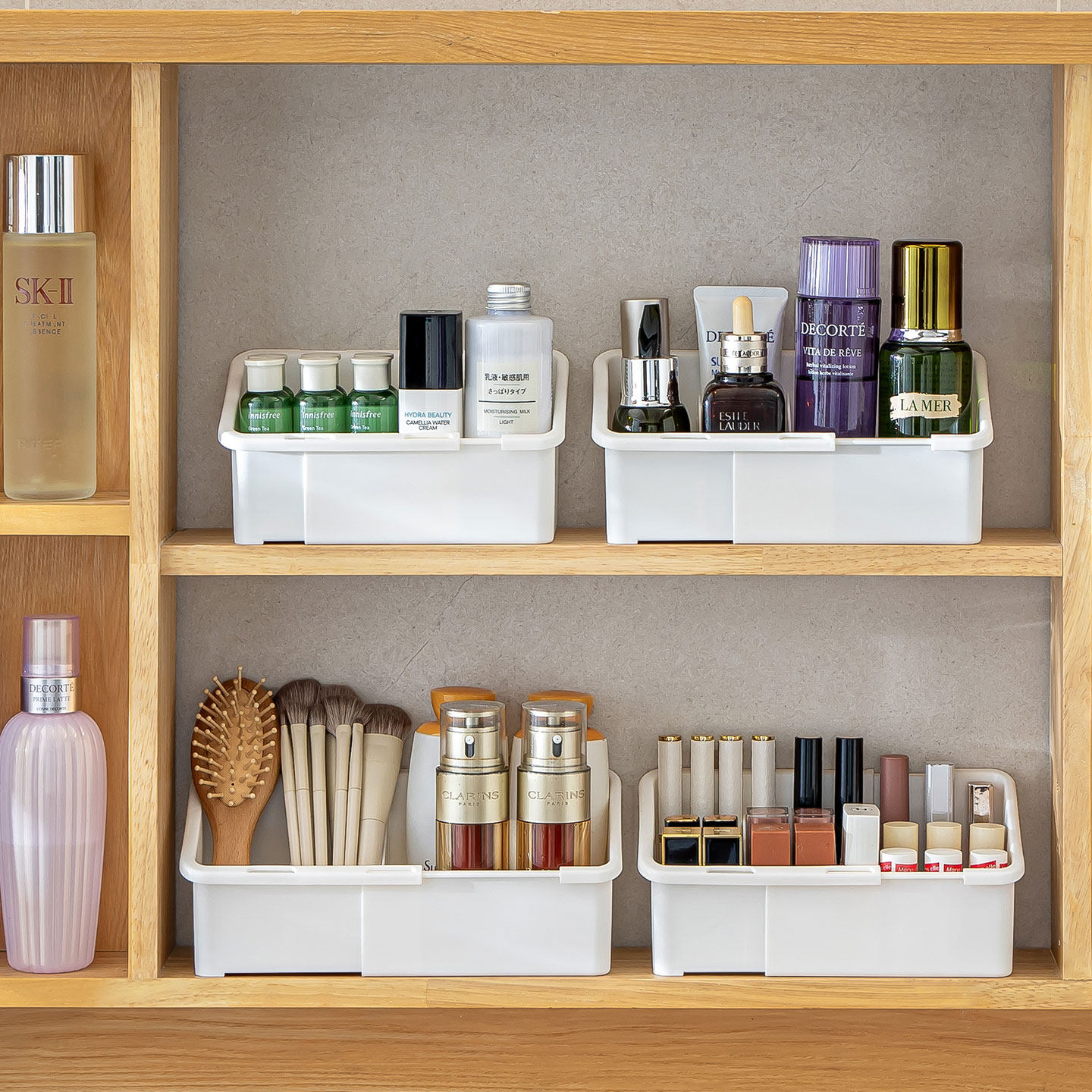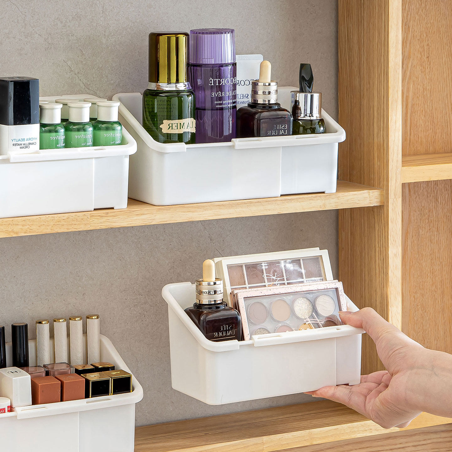 卫生间镜柜收纳盒可伸缩洗手间浴室柜内化妆品口红面膜分格置物架