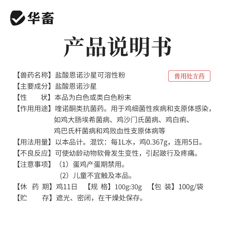 华畜兽用恩诺沙星可溶性粉禽药鸡药小猪拉稀药鸭鹅开口药正品兽药
