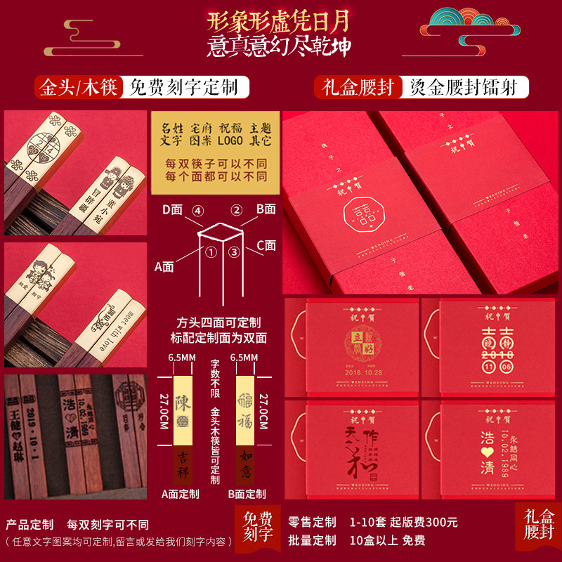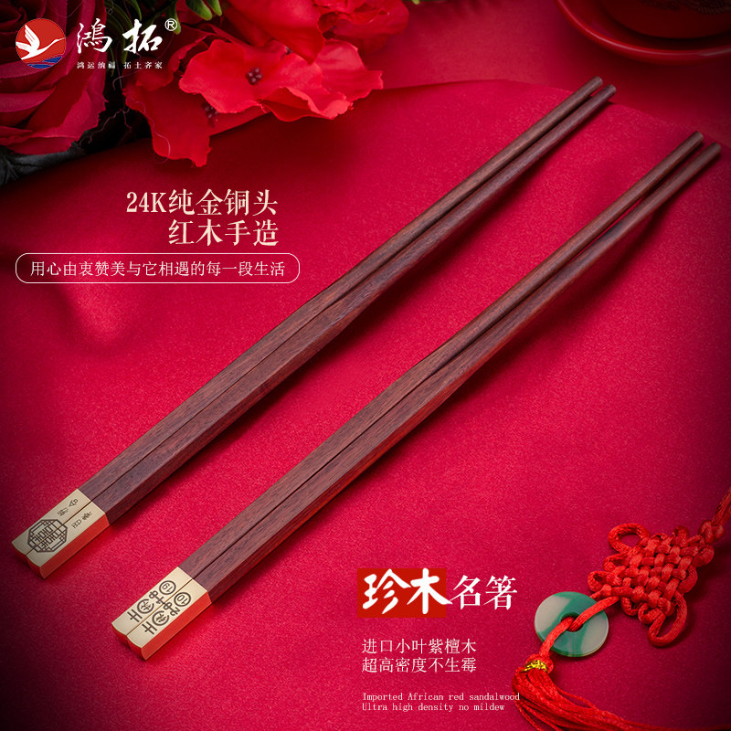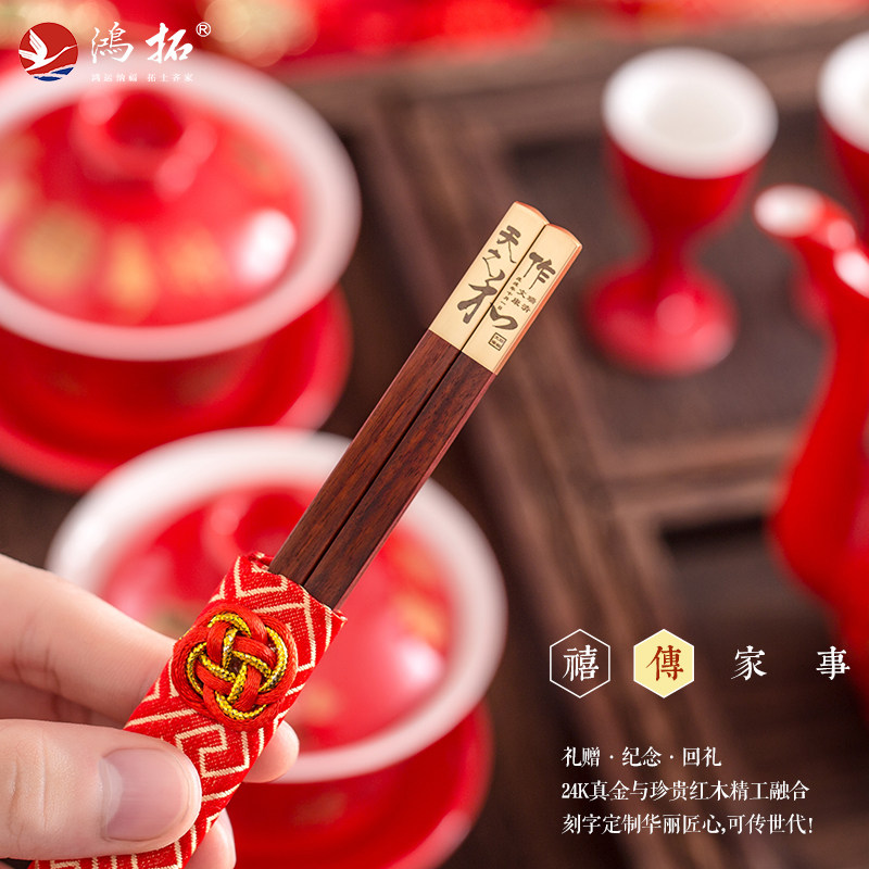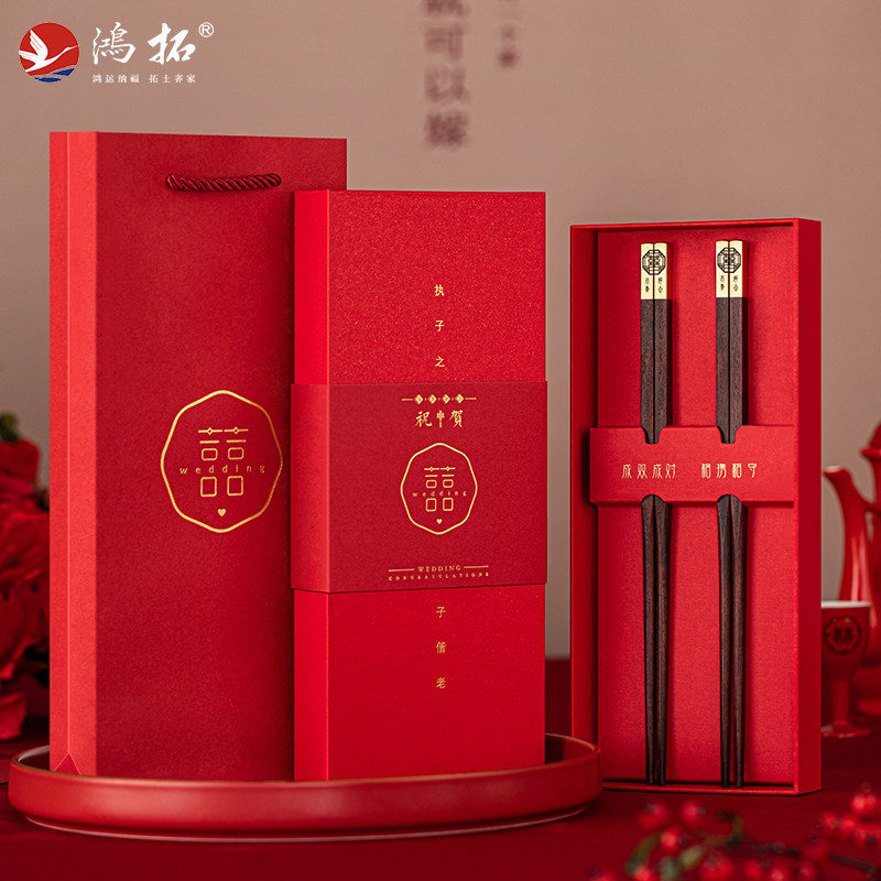 鸿拓高档红木筷子结婚伴手礼伴娘婚礼庆实用小礼品情侣筷喜宴回礼