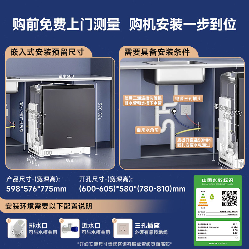 【国补15%】松下洗碗机嵌入式全自动一体机家用智能洗烘干13套1DX