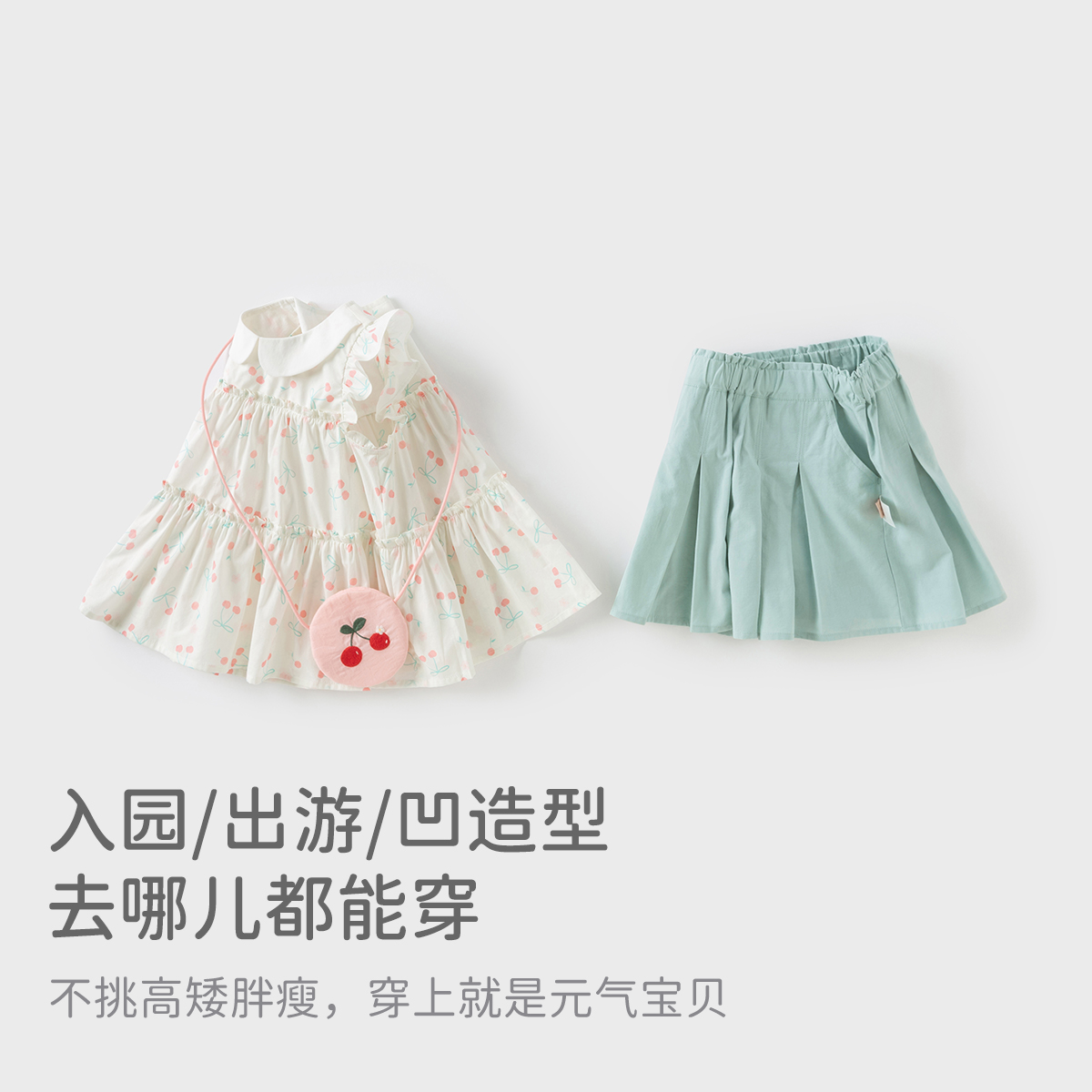 戴维贝拉女童短裤套装2025新款夏装儿童印花上衣两件套宝宝衣服