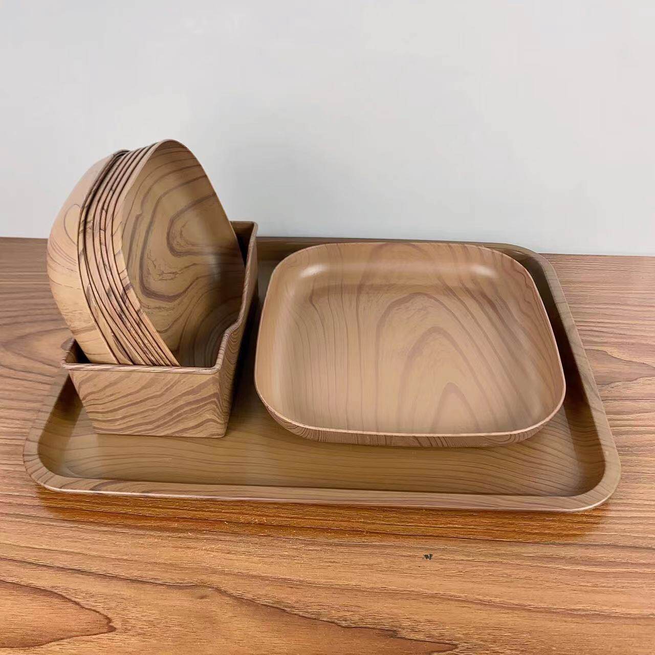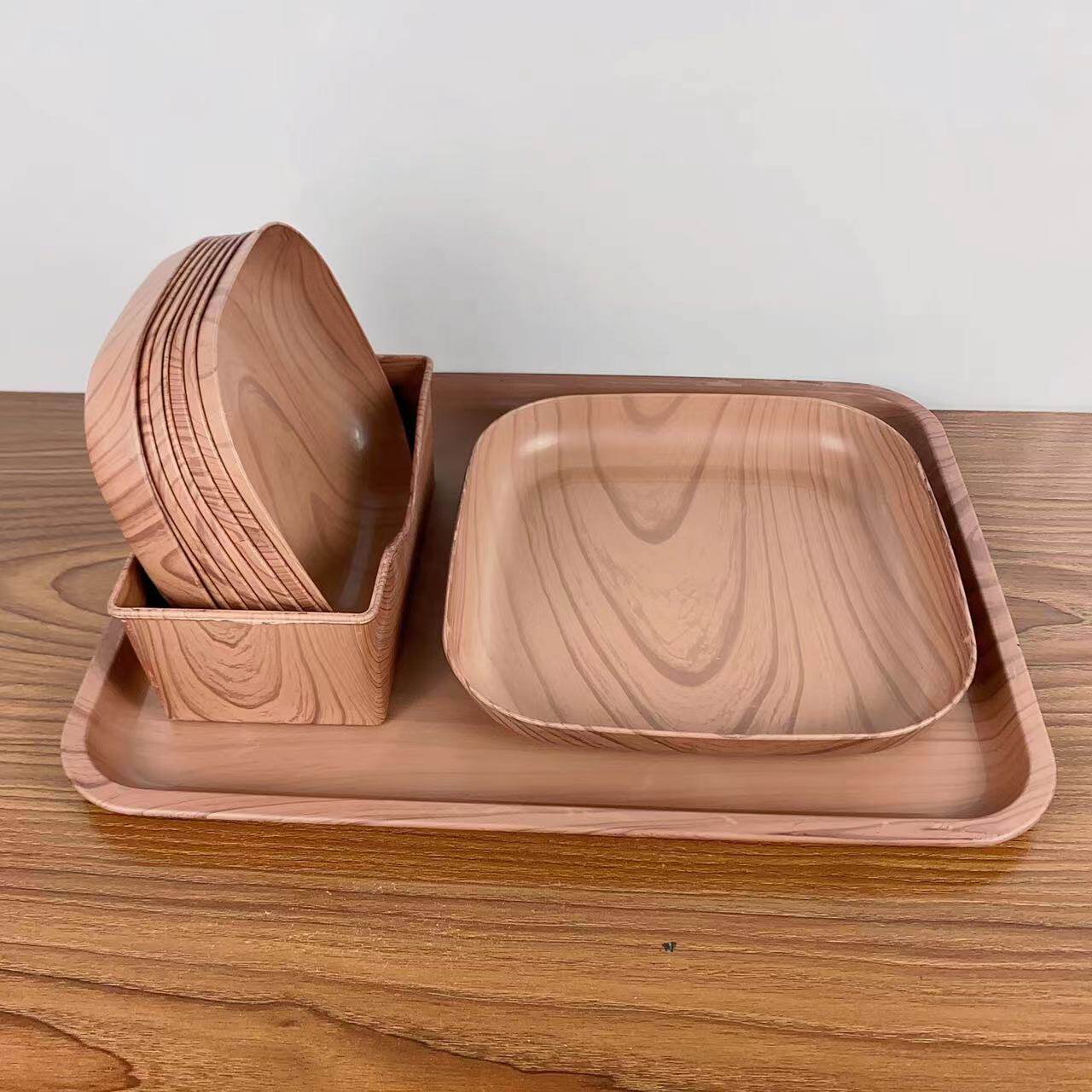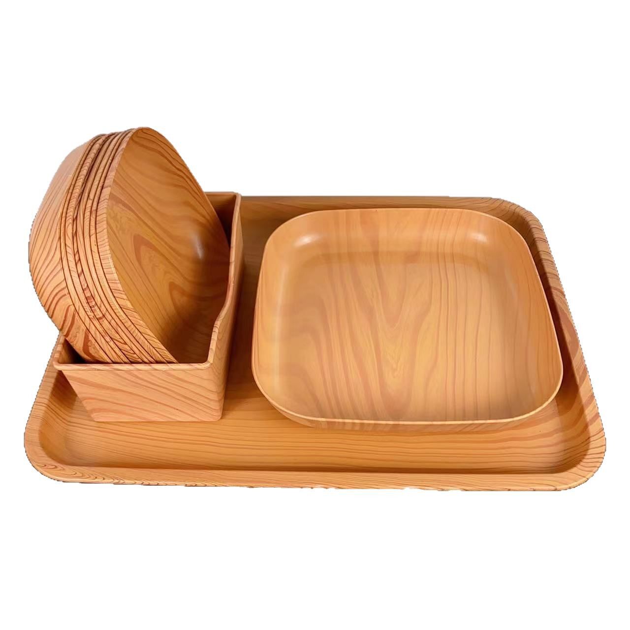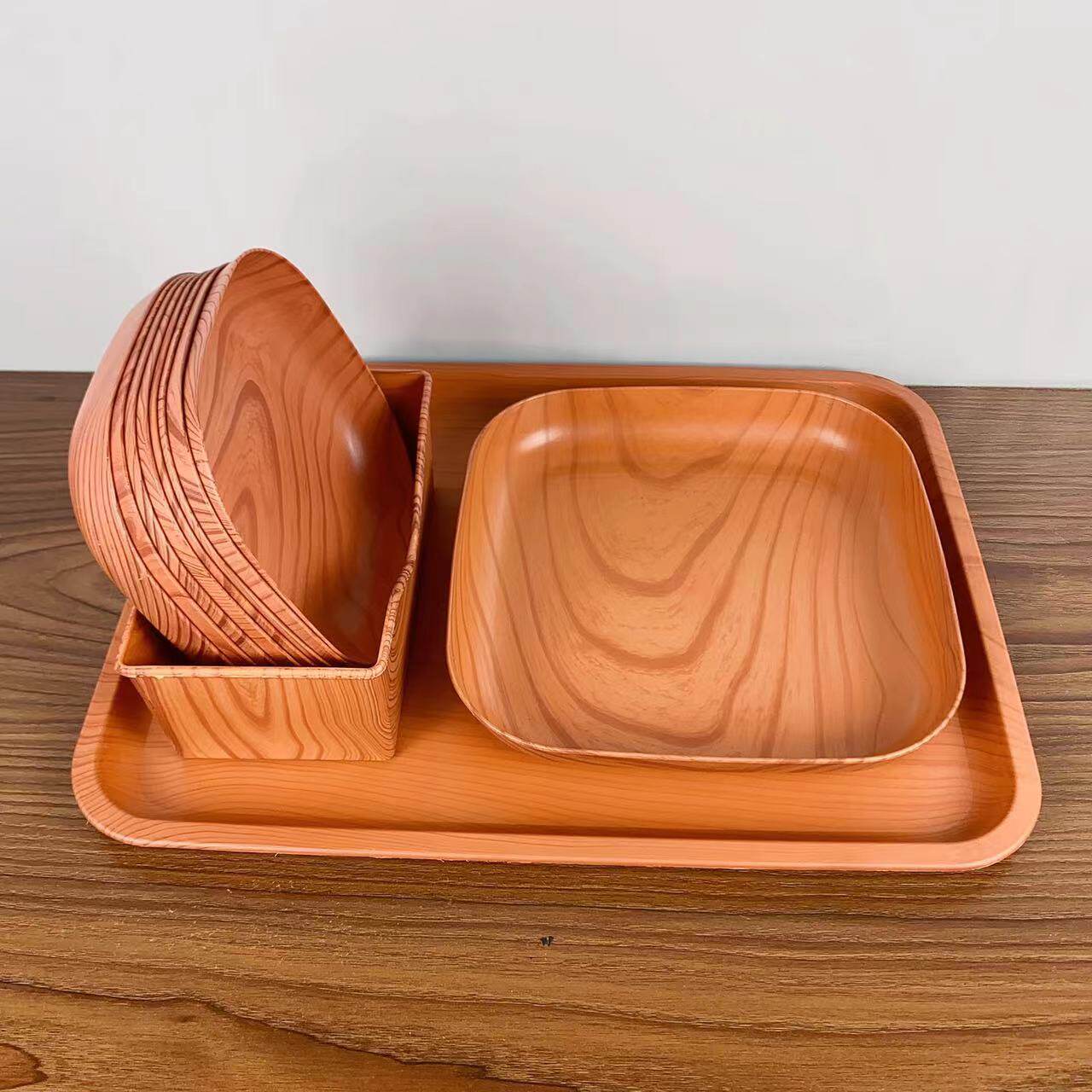 创意塑料木纹托盘套装家用吐骨碟水果盘零食盘下午茶托盘餐桌骨碟