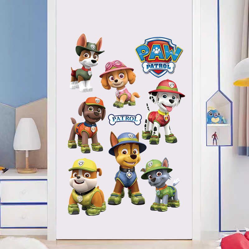 狗狗巡逻队汪汪动画卡通自粘墙贴儿童装饰男孩墙壁海报衣柜房门