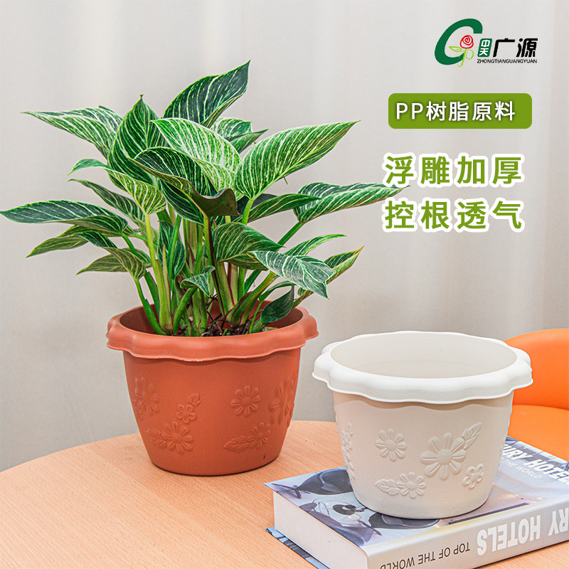 花盆家用多肉植物树脂透气绿萝网红加厚大号塑料浮雕圆形控根盆