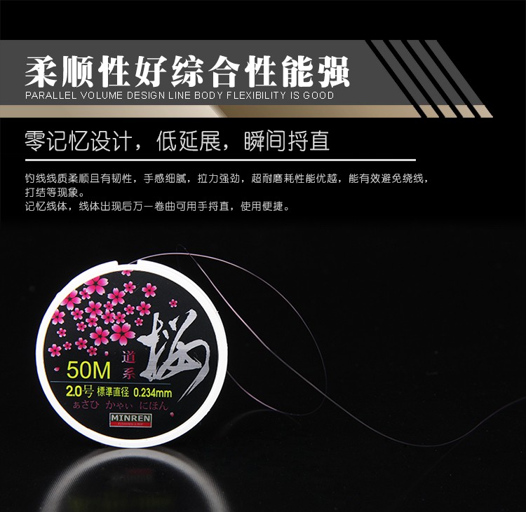 名人国际鱼线日本樱花鱼线主线尼龙线高端子线柔软原丝鲫鱼正品强