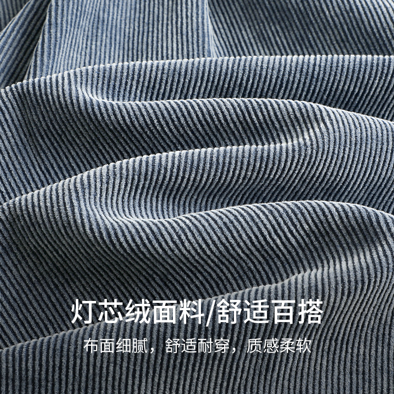 初秋冬搭配一套装男士复古灯芯绒衬衫式外套牛仔蓝阔腿长裤两件套