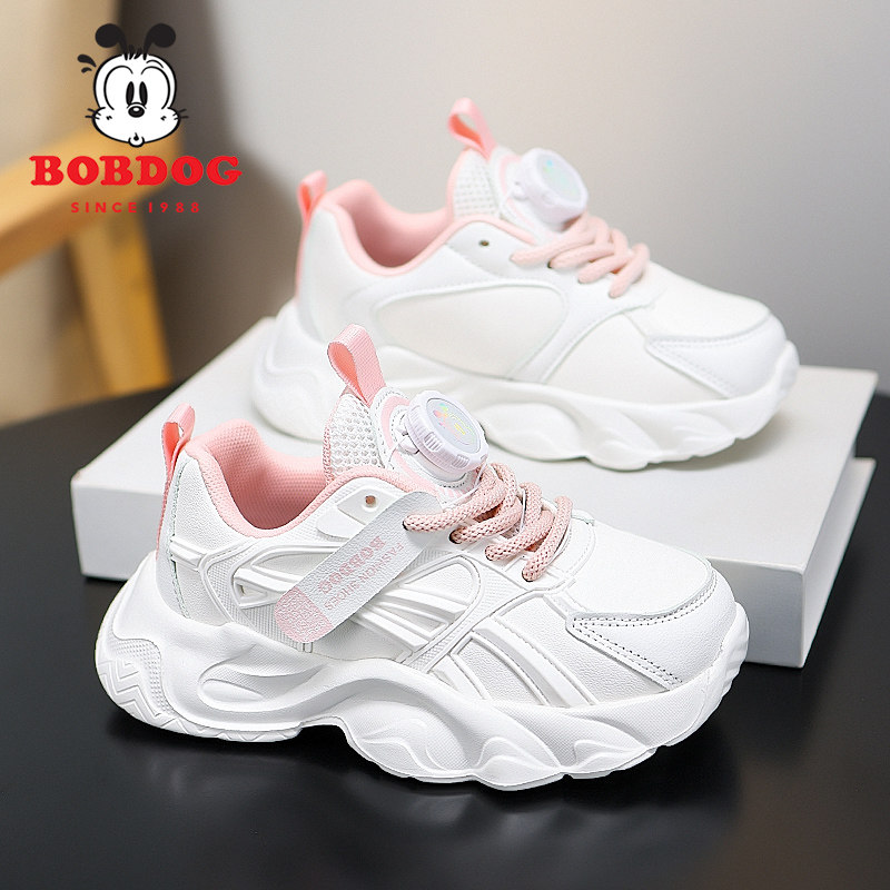 巴布豆童鞋女童运动鞋2025春秋新款儿童小白鞋皮面防水女孩老爹鞋