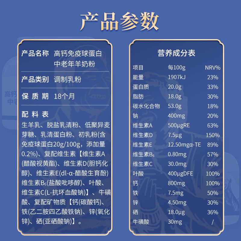 九羊高钙免疫球蛋白羊奶粉400g/罐中老年成人儿童营养奶粉