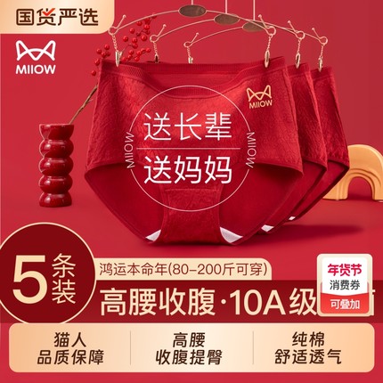猫人妈妈内裤女士本命年红色纯棉抗菌裆高腰收腹2026马年三角短裤