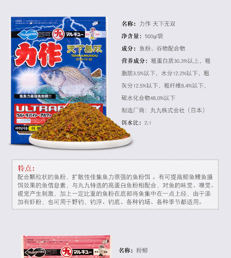 力作无双日本进口 天下无双 正品500克 黑坑野钓鲫鱼饵料丸九鱼饵