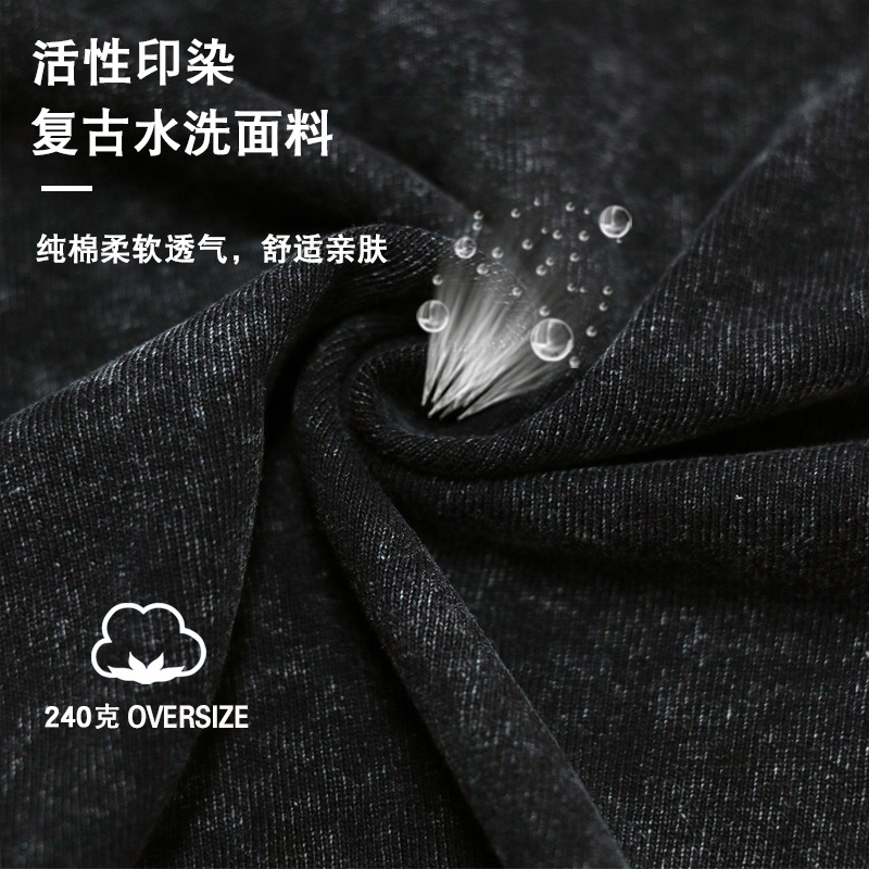 春秋240g水洗做旧枪花摇滚乐队假两件男潮流宽松纯棉圆领长袖T恤