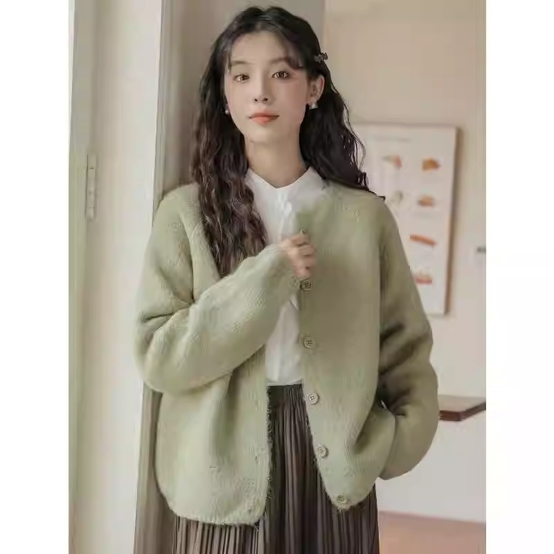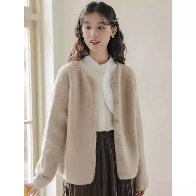 高级感超好看短款针织开衫女春秋正肩显瘦圆领毛衣外套温柔风上衣