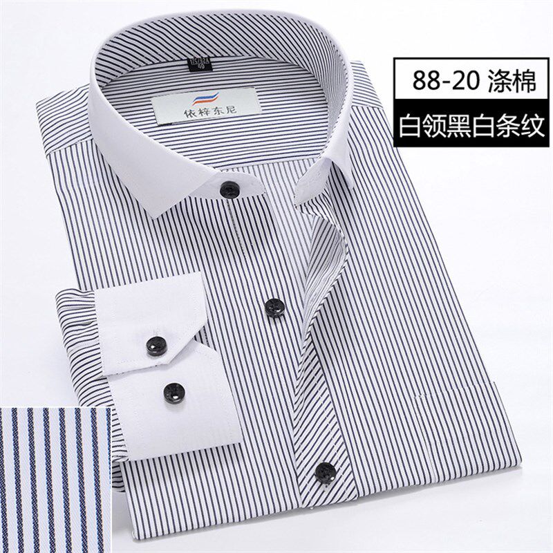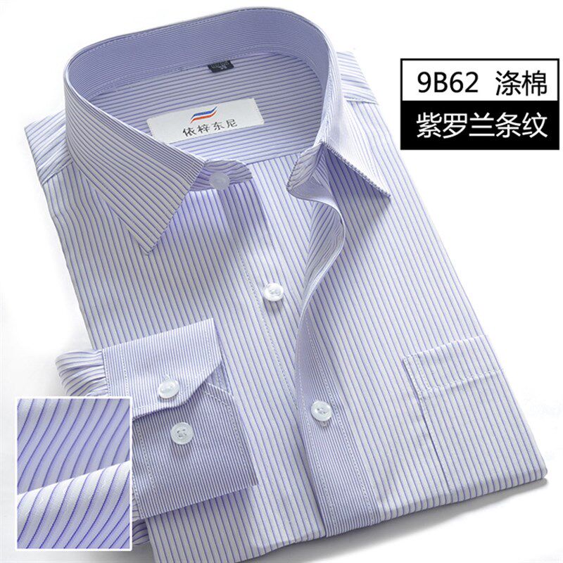 男士衬衫长袖秋季男装中年男士条纹衬衣纯棉商务正装职业工装免烫
