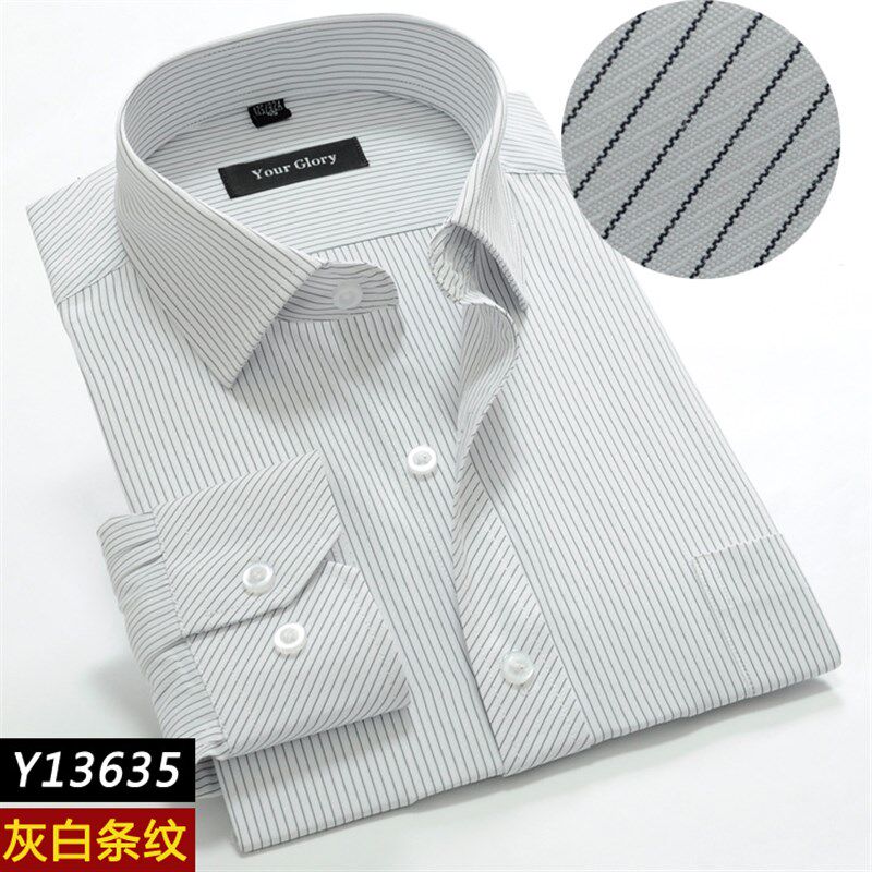 春季隐条纹白衬衫男长袖商务休闲职业工装白衬衣男西装寸衫工作服