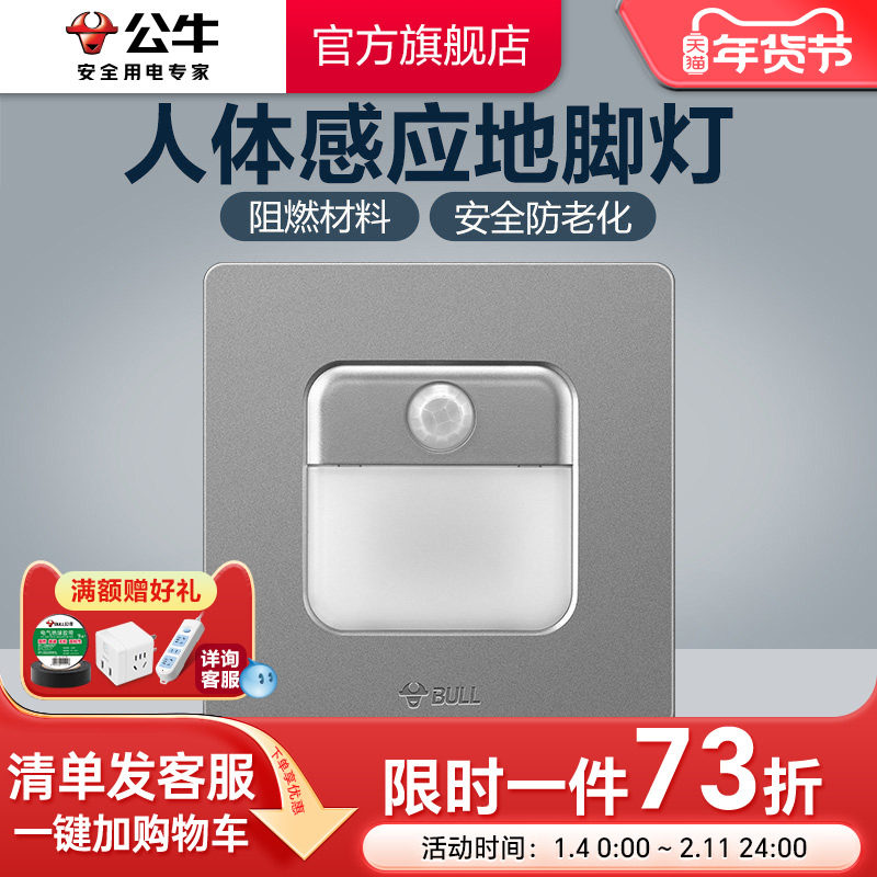 公牛插座旗舰地脚灯楼梯灯夜灯人体红外感应过道壁脚指示灯G12灰