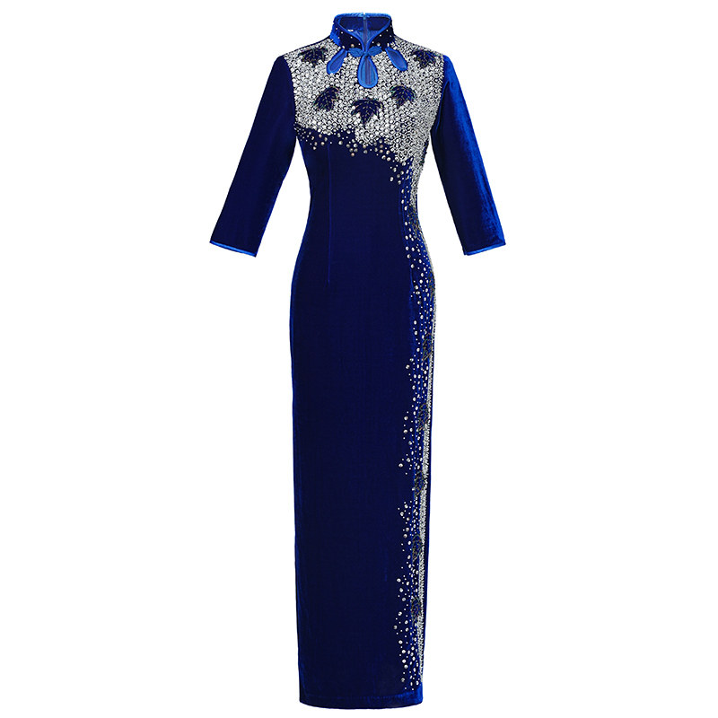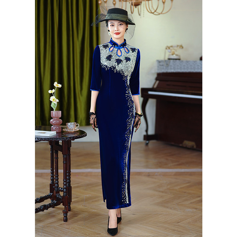 老上海金丝绒旗袍晚礼服礼服走秀优雅长款新款妈妈婚宴高档女洋气