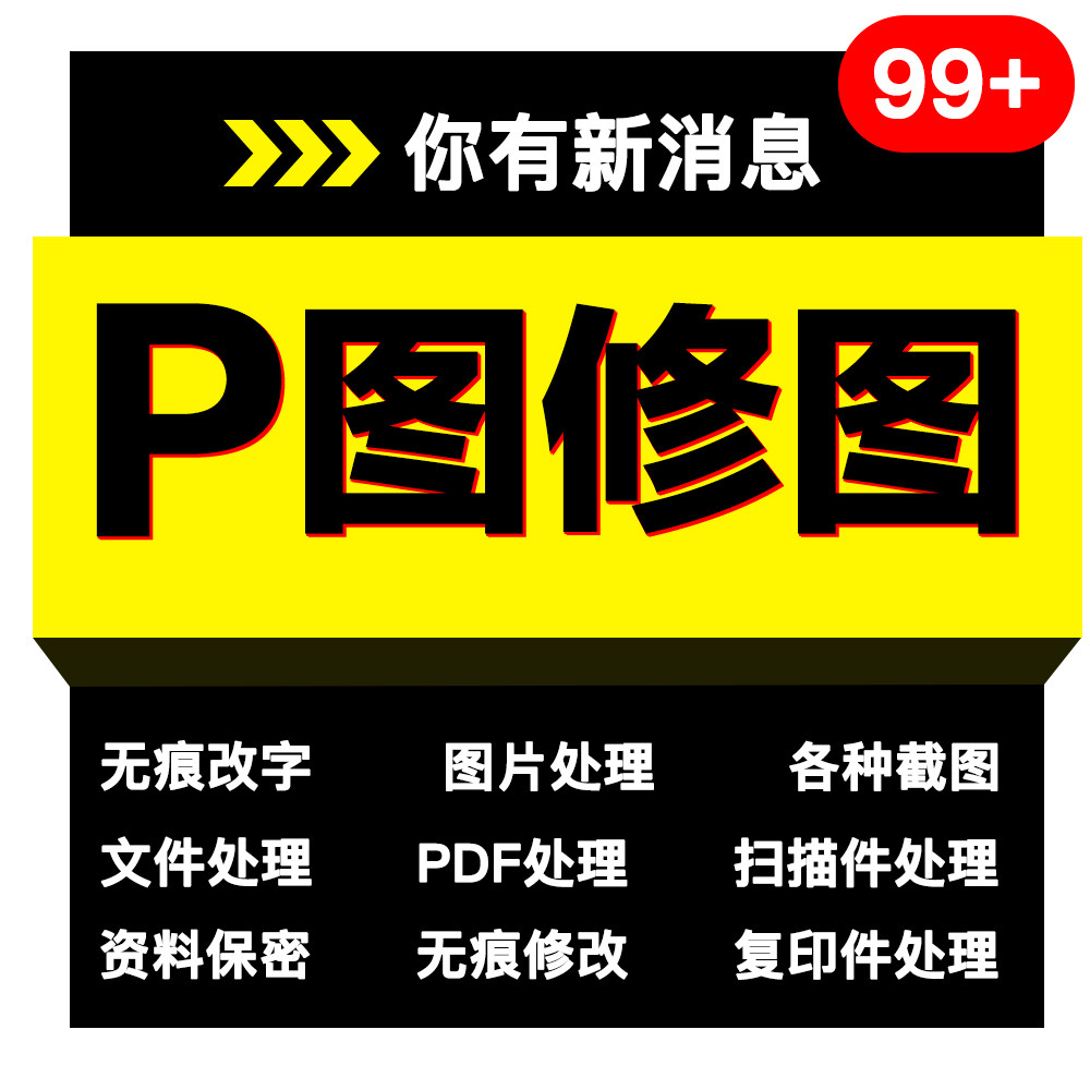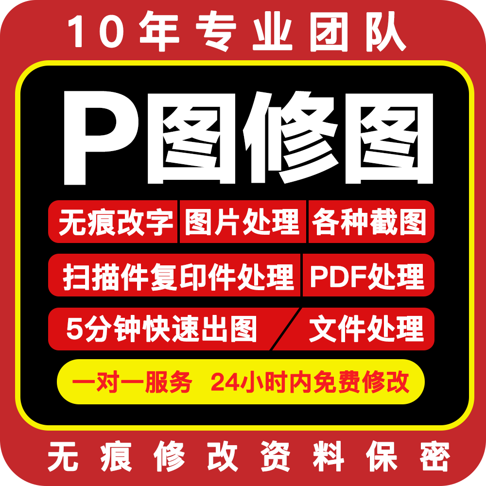 p图修图改字加急主图修改证件照修文案PDF改图去水印照片处理