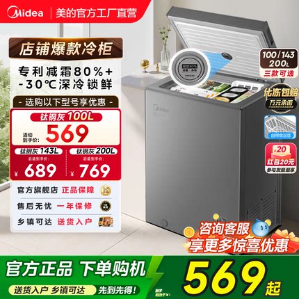 美的100/143/200L小冰柜家用小型冷柜冷冻冷藏一级减霜官方小冰箱