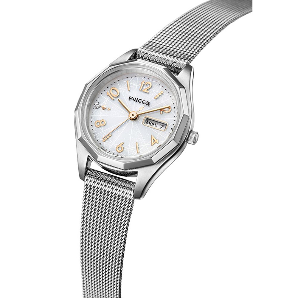 CITIZEN 西铁城手表 女士WICCA 太阳能科技日期和日期网状表带 银