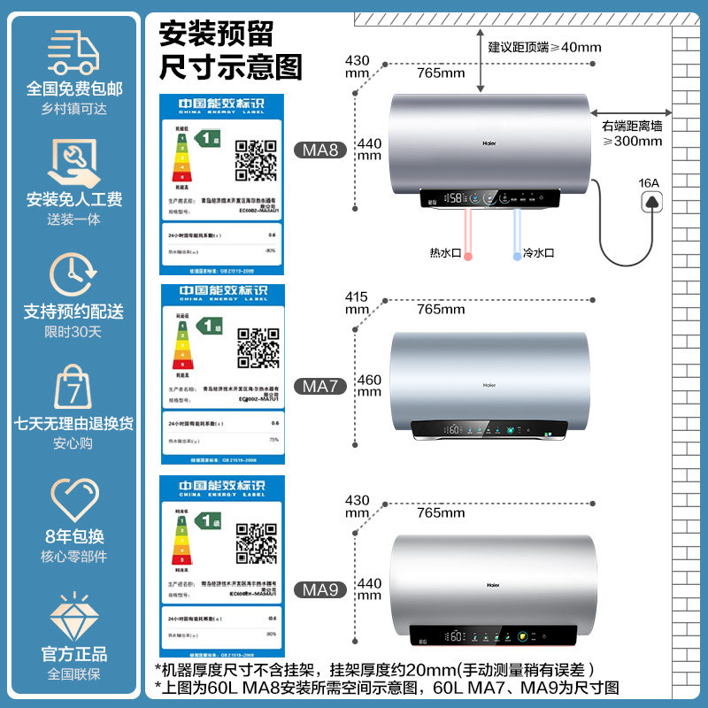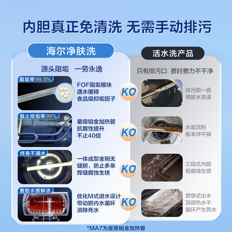 [焕新补贴]海尔电热水器官方家用洗澡小型变频一级净肤洗MA8