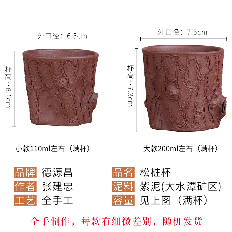 德源昌 宜兴紫砂品茗杯主人杯 紫泥松桩杯全手工品茗杯功夫茶杯