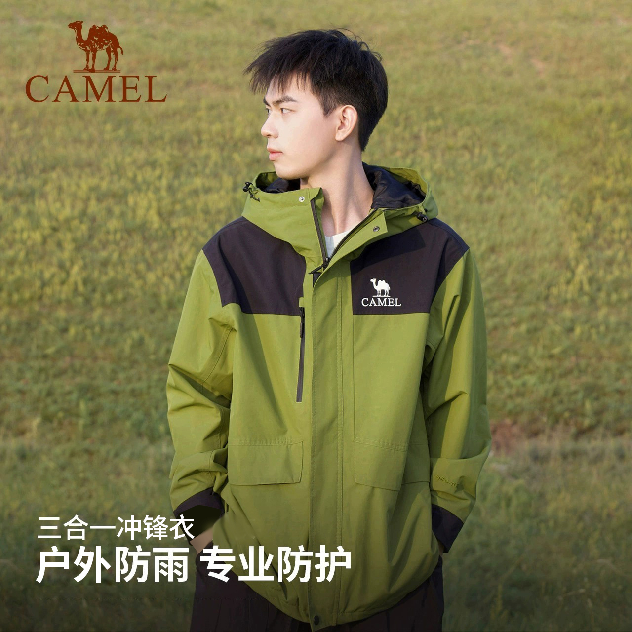 骆驼户外岩野冲锋衣男女款三合一抓绒两件套