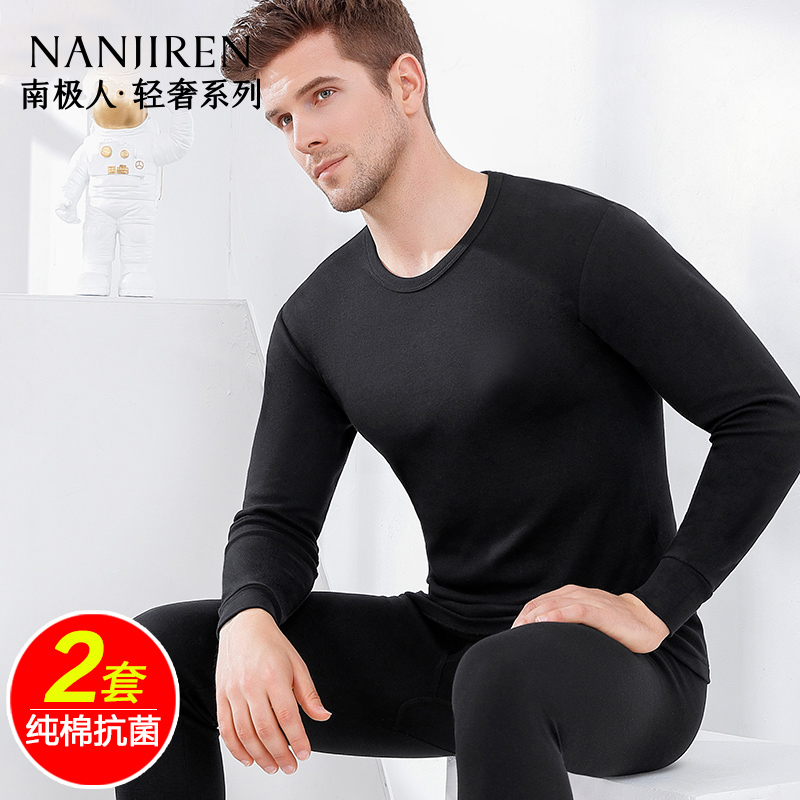 南极人纯棉秋衣秋裤男士打底棉毛衫全棉线衣线裤保暖内衣薄款套装