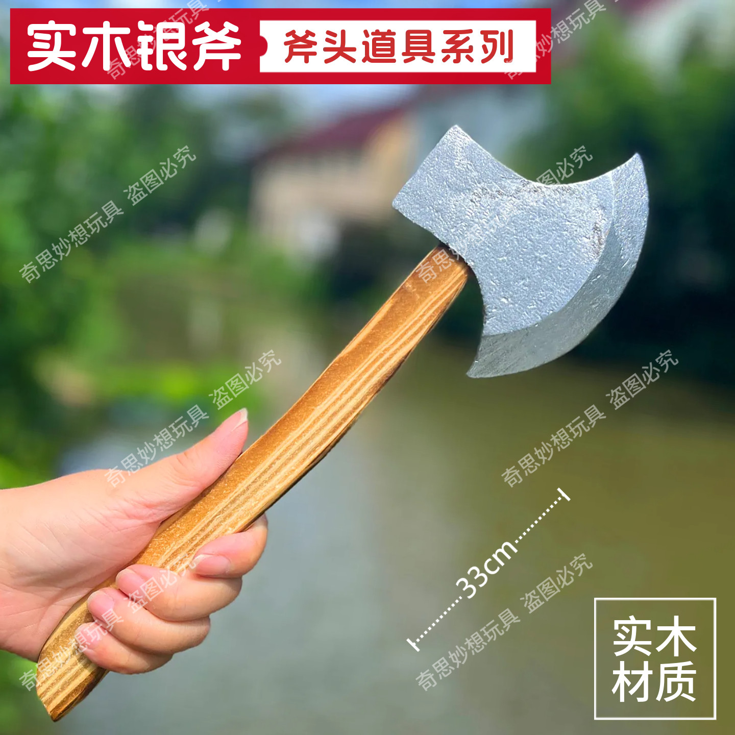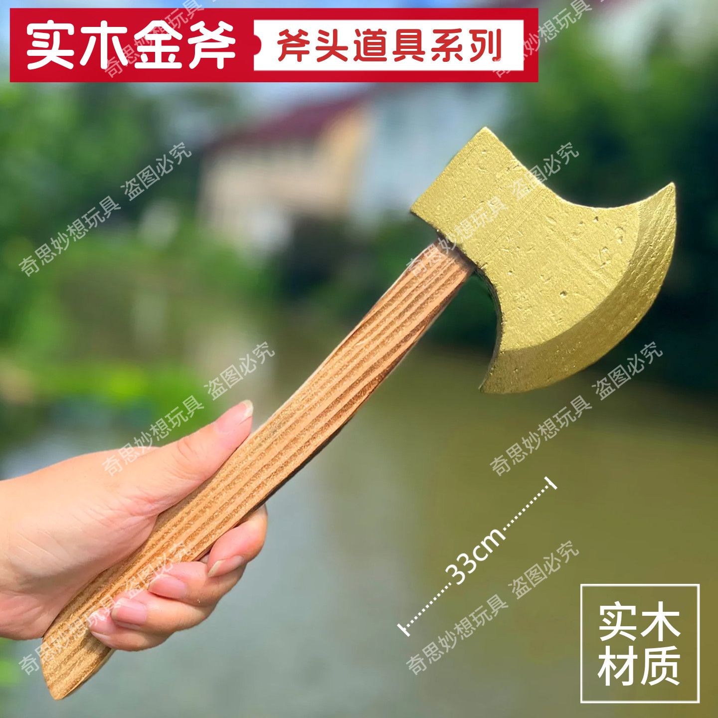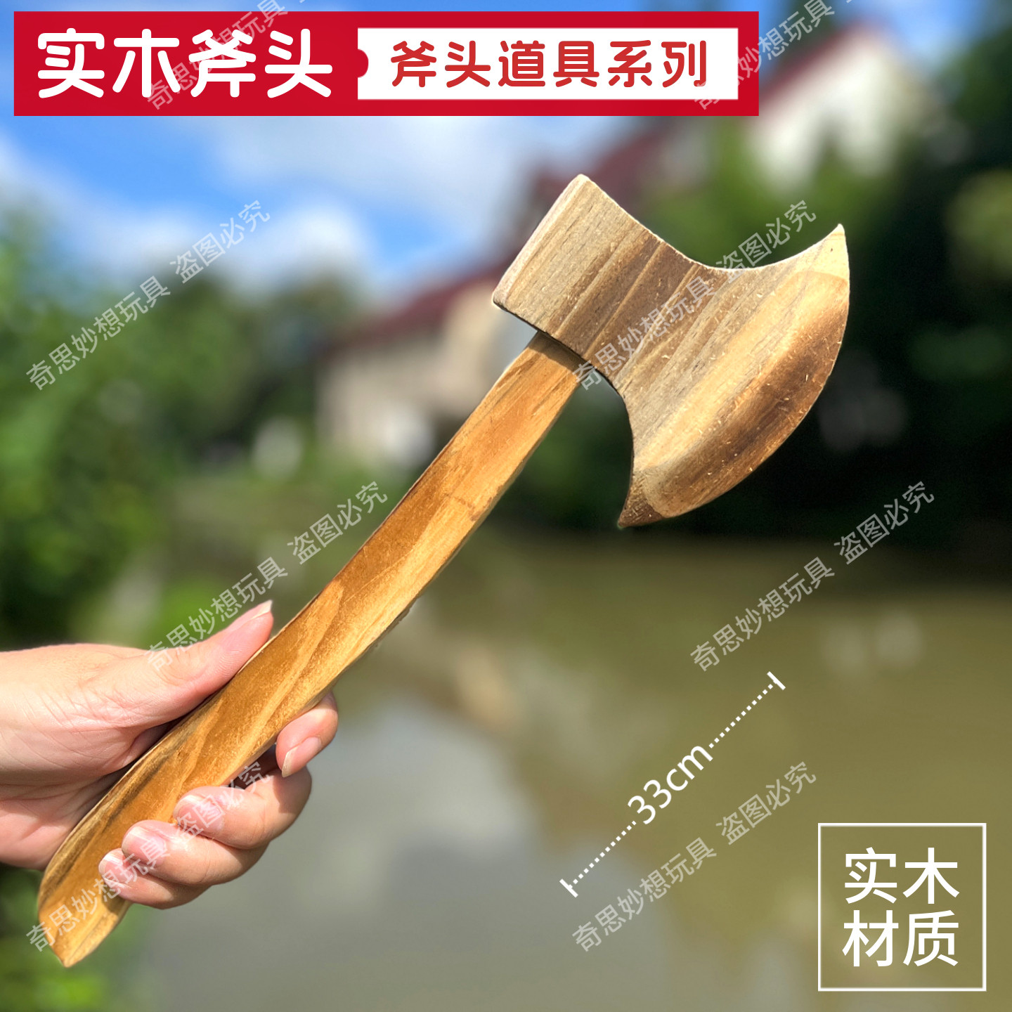 厂家批实木斧子精品小木斧斧头帮道具神斧小品表演舞台道具现货发