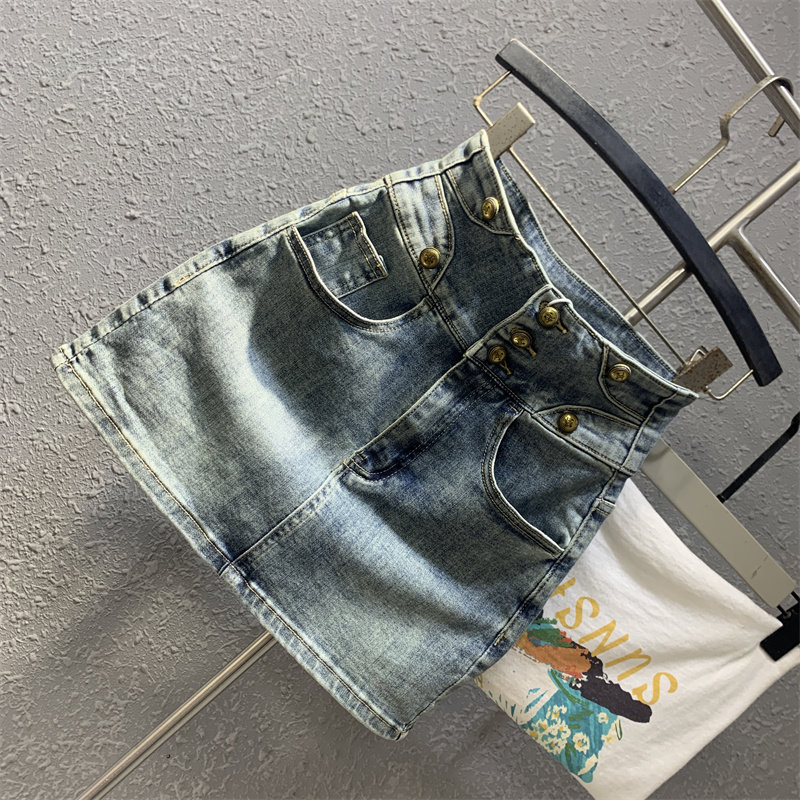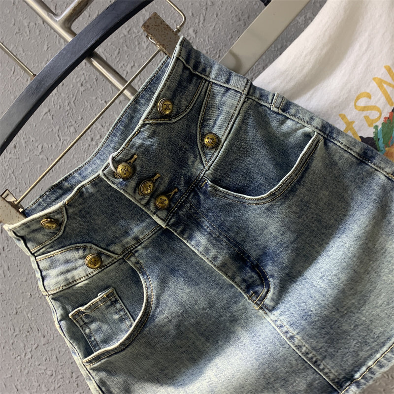 高腰设计感单排扣牛仔半身裙女2025春夏新款洋气减龄显瘦a字短裙