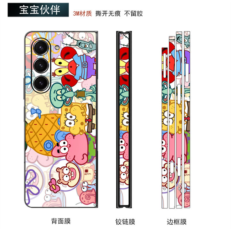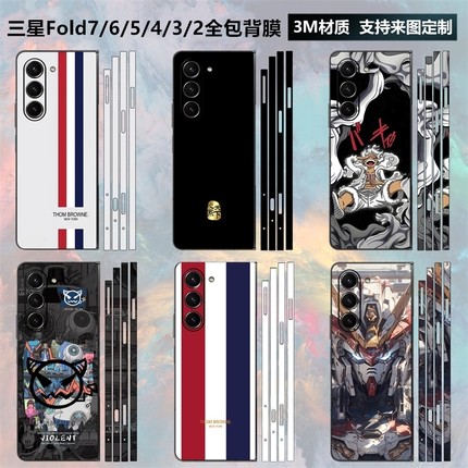适用于三星fold7/6/5/4/3/2贴纸全包边背膜个性卡通边框彩膜w25/w24后盖背贴w23/w22/w21中轴铰链保护贴膜