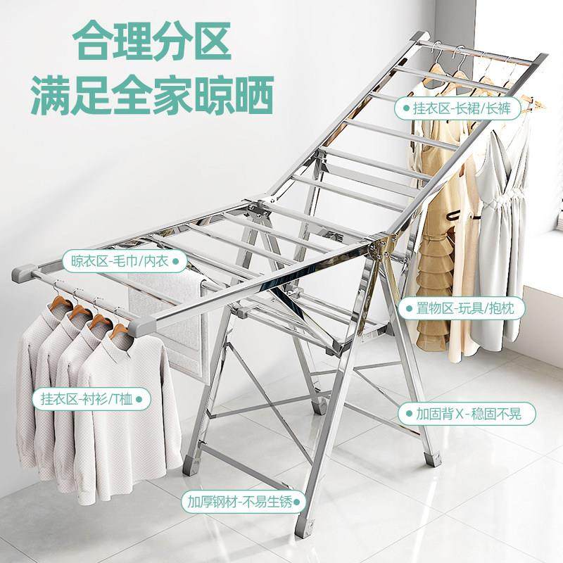 顶固不锈钢晾衣架落地加粗加厚折叠室内阳台家用凉衣架晒被子神器