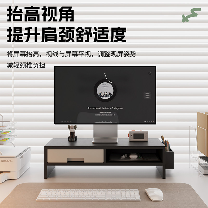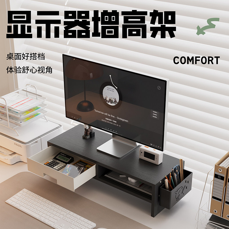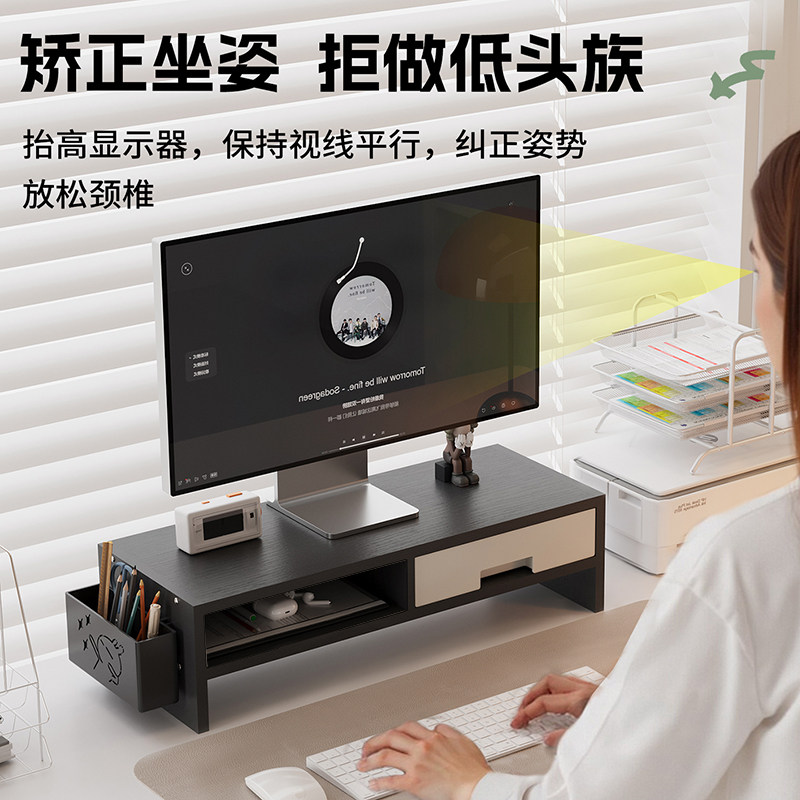 显示器增高架台式电脑底座办公桌置物架大抽屉工位键盘收纳架神器