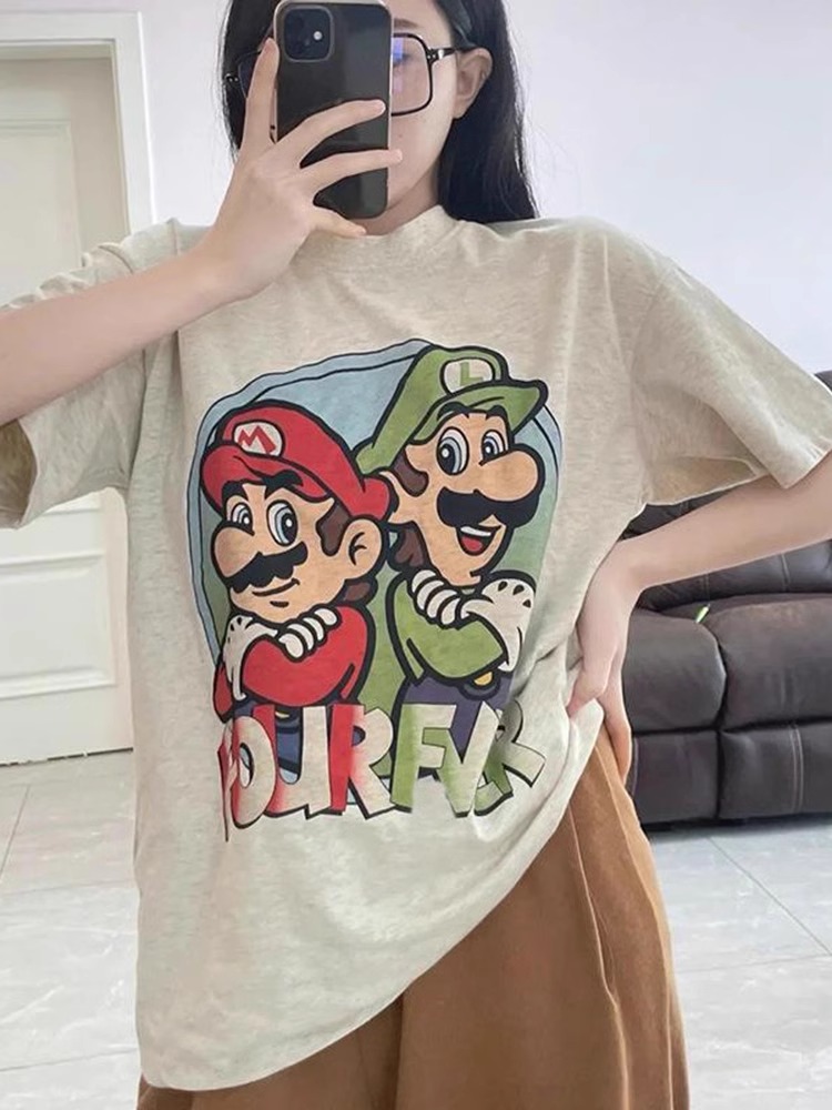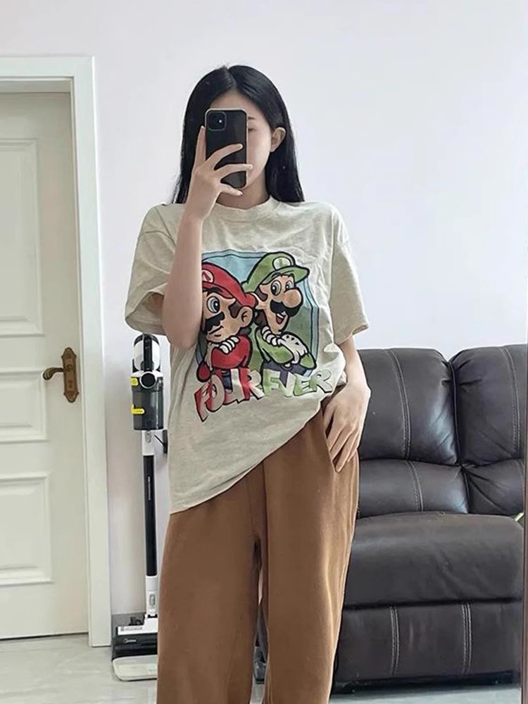 2025新款美式灰色印花字母t恤女装短袖纯棉宽松夏季港味chic上衣