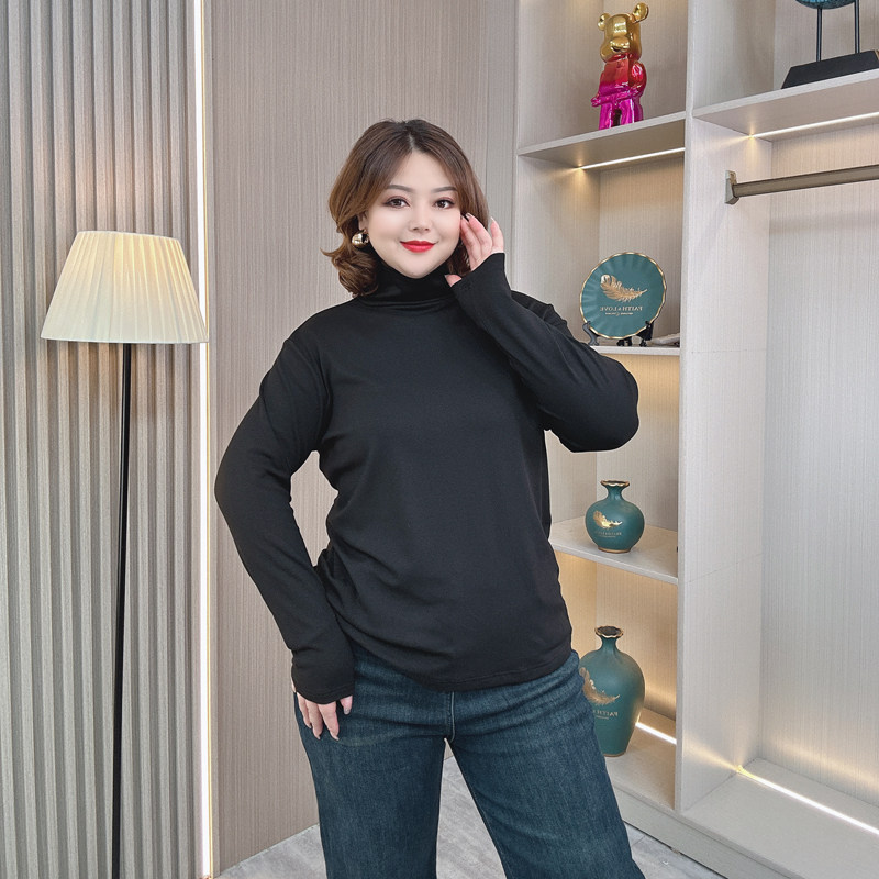 磨毛保暖高领打底衫女秋冬新款大码女装胖mm修身显瘦内搭抓绒上衣