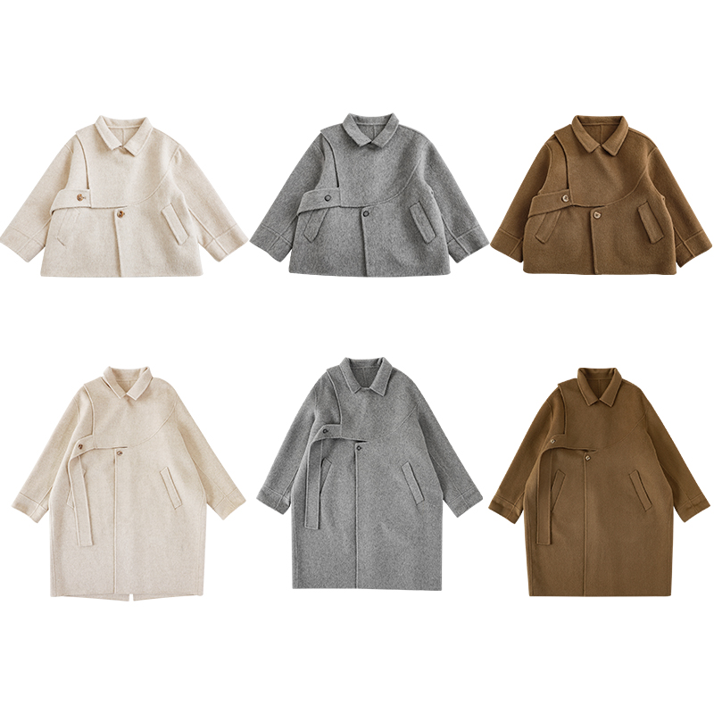 幼悠冬季男童手工双面呢宽松时尚帅气呢子毛呢外套儿童呢子大衣潮