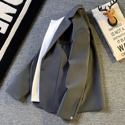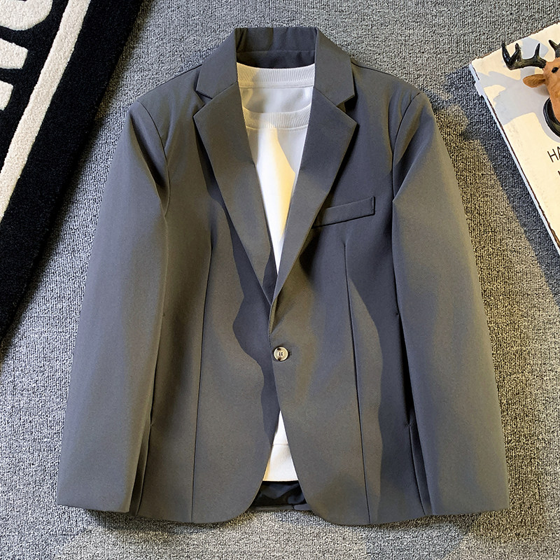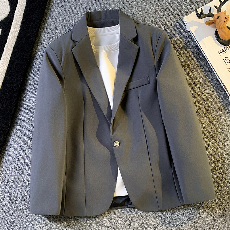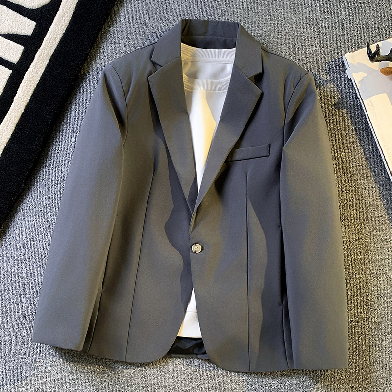 高级感宽松西服外套男士轻熟风垂感纯色休闲小西装韩版潮痞帅单西