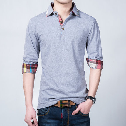 春秋装纯棉长袖t恤男秋衣有衬衫领polo衫休闲外穿大码肥佬打底衫
