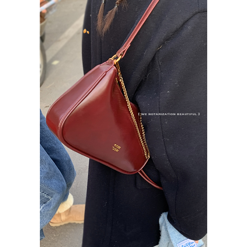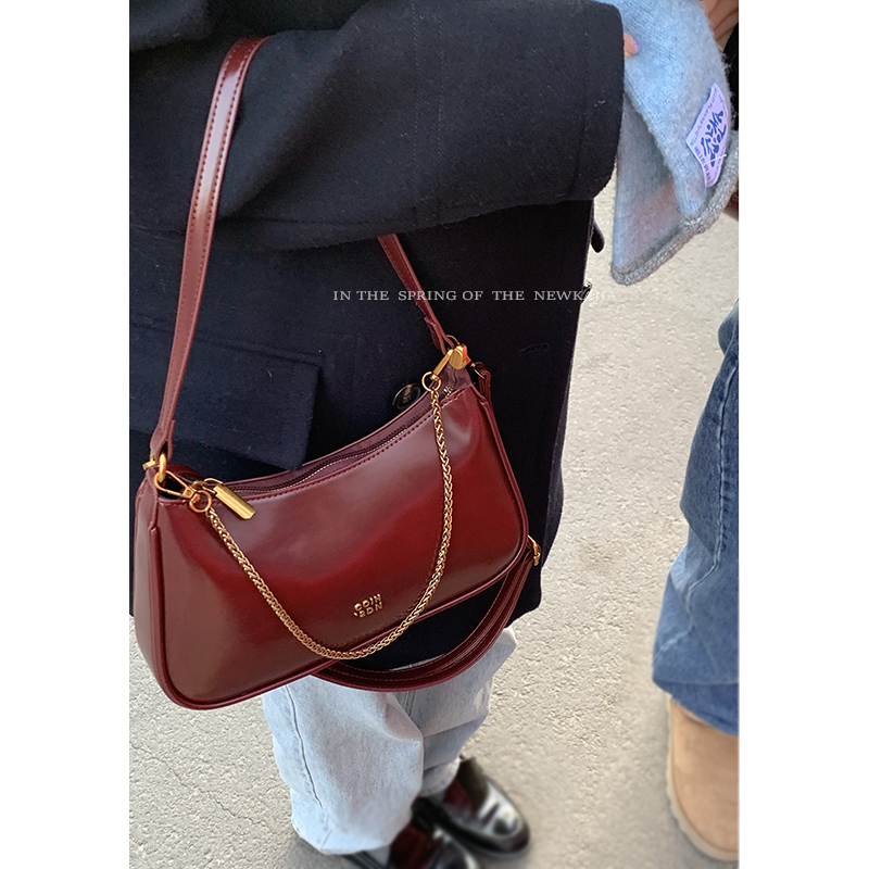 复古红色小包包女2024新款潮时尚韩版腋下包百搭链条斜挎小方包