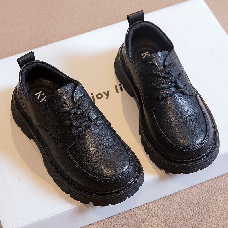 真皮男童皮鞋儿童黑色英伦小学生春秋夏季新款镂空中大童演出宽头