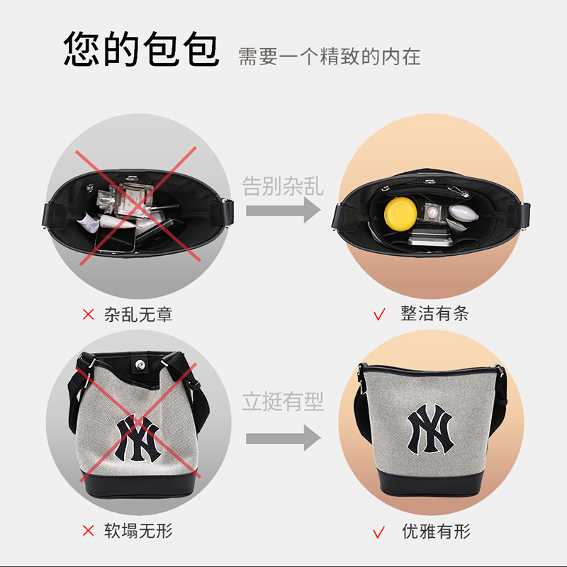 适用MLB托特包内胆包化妆包中包收纳包毛毡大容量水桶包内衬包撑